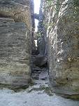 Samstagmorgen - es ist 8:15 Uhr, völlig einsam sitzen die Wanderleiter auf der Treppe vor dem Bahnhof in Niedersedlitz. Will heute etwa keiner mitwandern? Aber kurz vor halb neun wendet sich das Blatt und die Gruppe wächst schlagartig. Planmäßig steigen wir in den Zug in Richtung Sächsische Schweiz. In Königstein dürfen wir das Aussteigen nicht verpassen. Aber scheinbar hat sich der halbe Zug vorgenommen, in Königstein in den Bus umzusteigen. Massen strömen nun zur Bushaltestelle am Reißigerplatz. Beim Einsteigen wird’s dann richtig kuschelig, aber trotzdem fahren wir einigermaßen pünktlich in Richtung Rosenthal ab. Gegen 10 Uhr steigen wir an der Haltestelle Fußweg zum Schneeberg aus. Jetzt müssen noch alle Teilnehmer ohne eigenen Antrieb verpackt werden, dann geht’s endlich los. Wir laufen zunächst in Richtung Schneeberg bis zum ehemaligen Grenzübergang Eulenthor. Hier halten wir uns halbrechts und folgen weiter dem gelb markierten Wanderweg. Etwa 700 m weiter biegt dieser an einer Kreuzung mit steinerner Wegsäule rechts ab. Nun geht es bergab hinein ins Tal der Dürren . Die Felswände auf beiden Seiten werden immer höher während wir dem Bach etwa 1,5 km talwärts begleiten. Dann treffen wir auf einen breiten Querweg. Hier haben wir die Sohle des Bielatales erreicht. Jetzt ist erst einmal Sammeln angesagt. Auch bergab scheint die Wandergeschwindigkeit innerhalb der Truppe signifikante Differenzen aufzuweisen. Der Wanderleiter wird wohl damit leben müssen! Nach einigen Minuten setzen wir unsere Tour nach links fort. Weiterhin begleitet uns die gelbe Wanderwegmarkierung. Wir wandern etwa 700 m auf dem breiten Weg durchs Bielatal. Dann weist die gelbe Wegmarkierung nach rechts und wir verlassen den Talgrund. Erst allmählich, später immer steiler werdend, führt uns der Weg bergan. Oben angekommen treffen wir auf einen rot markierten Weg, dem wir nach rechts folgen. Nur einige Meter weiter weist uns kurz vor einem Rastplatz ein Wegweiser auf den Aussichtspunkt rechts hin. Wir biegen in den Pfad ein und stehen kurz darauf auf der Grenzplatte. Hier nimmt uns der herrliche Blick in den Eilander Felsenkessel sofort gefangen. Wir haben den richtigen Platz für eine erste Rast gefunden. In der Sonne lassen wir uns nieder und plündern die Rucksäcke. Alle sind guter Dinge. Halt – nicht alle! Beim Durchzählen wird der Wanderleiter stutzig. Auch wenn 5 Prozent Schwund zulässig sind, ist das nicht als Pflicht zu betrachten. Also entschließt sich der Wanderleiter, die fehlenden 5 Prozent zu suchen. Nach einem kurzen Sprint gelingt es ihm, etwa 500 m weiter den verloren Wanderfreund einzufangen und dem Rudel wieder zuzuführen. Dieses freudige Ereignis feiern wir mit einem kleinen roten Vitamingetränk – prost! Nachdem alle gestärkt sind, kann’s dann weiter gehen. Zunächst müssen wir zurück ins Bielatal. Also gehen wir den gelben Weg wieder hinunter. Als wir das steile Wegstück hinter uns gelassen haben, erreichen wir im Tal eine Stelle, an der der gelbe Weg links abbiegt und ein Pfad geradeaus in den Wald hinein führt. Diesem Pfad folgen wir. Ein wenig Abenteuer ist dabei, als wir zwei Bächlein überqueren. Auf der anderen Seite treffen wir wieder auf den breiten Bielatalweg. Jetzt halten wir uns rechts. Schilder und Grenzsteine am Weg weisen uns darauf hin, dass wir im Begriff sind, Sachsen zu verlassen. Seit einiger Zeit ist es glücklicherweise wieder erlaubt, diese alte Wegverbindung nach Böhmen zu benutzen. Es dauert nicht lange, dann tauchen die ersten Häuser von Eiland (Ostrov) vor uns auf. Wir durchqueren das Dorf entlang der Straße. Dabei müssen wir aufmerksam auf Wegzeichen achten, denn wir dürfen den rot markierten Wanderweg nicht verpassen. Ziemlich am Ende des Dorfes finden wir ihn an einer Kreuzung. Hier biegen wir rechts ab und gehen auf der Straße den Berg hinunter. Hinter dem Teich an den Hütten halten wir uns der Markierung folgend links. Der rote Wanderweg führt uns zunächst durch die Talaue, später dann durch den Wald bergan. So gelangen wir auf einem einst mit Steinen befestigten Weg ins Felsengebiet Himmelreich. Hier wird der Weg immer steiler und wer will, der kann zwischen den Felsgebilden hindurch klettern. Aber außer dem Wanderleiter und den Kindern scheint es keiner zu wollen. Frau Wanderleiterin tritt sofort die Flucht an, So trägt sie die Verantwortung dafür, dass es zu einer kurzen Phase der Verwirrung in der Truppe kommt. Da aber allen klar zu sein scheint, dass unser Weg immer da lang geht, wo es am steilsten ist, treffen wir uns oberhalb der Felsen doch alle wieder. Die körperliche und mentale Anstrengung der letzten Minuten muss nun mit einer angemessenen Pause bewältigt werden. Als es weiter geht, sind es nur noch wenige Schritte bis zur nächsten Station der Tour. Wir erreichen die Gaststätte Touristenbaude (Touristicka chata) in Tyssa (Tisa). Trotz großem Besucherandranges gelingt es uns allen, einen Platz im Gasthaus zu erobern. Das ist die Voraussetzung dafür, dass alle ein Mittagessen bekommen. Nach dem Essen können wir uns nun dem eigentlichen Ziel unserer Wanderung zuwenden – den Tyssaer Wänden. Diese beginnen direkt hinter der Gaststätte und empfangen erst einmal mit einem Kassenhäuschen. Der Wanderleiter wird ausgeguckt, um den Eintrittspreis für alle zu löhnen. Er tut dies auch mit dem Hinweis, dass heute die übergabe der Teilnahmeurkunden nur gegen Zahlung eines Obulus stattfinden wird. Dann tauchen wir ein in die bizarre Felsenwelt. So ziemlich jeder Felsblock hat hier einen Namen. An den Gebilden mit den Namen Schildkröte und Steinpilz gabelt sich den Weg. Wir verlassen unseren rot markierten Weg und folgen nun dem grünen Schrägstrich auf den Stufen hinunter. Es beginnt ein wildes Gewusel zwischen, durch und um die Felsen. Und die immer wieder auftauchende Frage: wie heißt das Ding hier? - Ketchup? - Majo? - Nee, Major! Nach Klärung der Herkunft des Einsiedel-Eies und anschließ